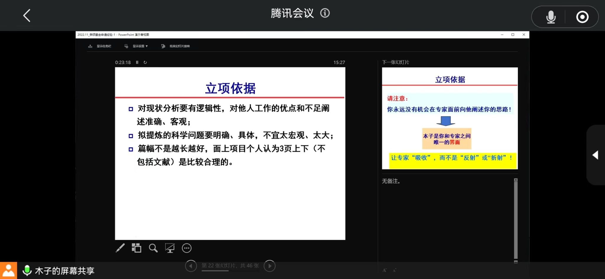 会上,李硕结合自己专业知识和申请国家自然科学基金的经验,以往年成功立项的项目申请书为例,深度剖析了如何撰写一份优秀的项目申请书,并就国家自然科学基金研究问题的提出、选题的凝练、申报书撰写要点把握、容易混淆的问题等方面进行了详细讲解。