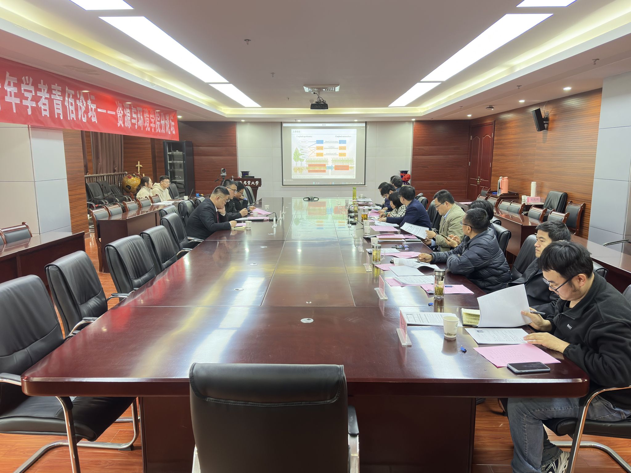 本网讯 4月7日下午,资源与环境学院于中西部大楼南楼510会议室举办学校首届国际青年学者“青佰论坛”分论坛,来自国内外高校、科研院所的10位青年学者通过线上线下同步参会。学院党政领导、教授委员会委员、新进高层次人才代表参会,分论坛由副院长叶新新教授主持。