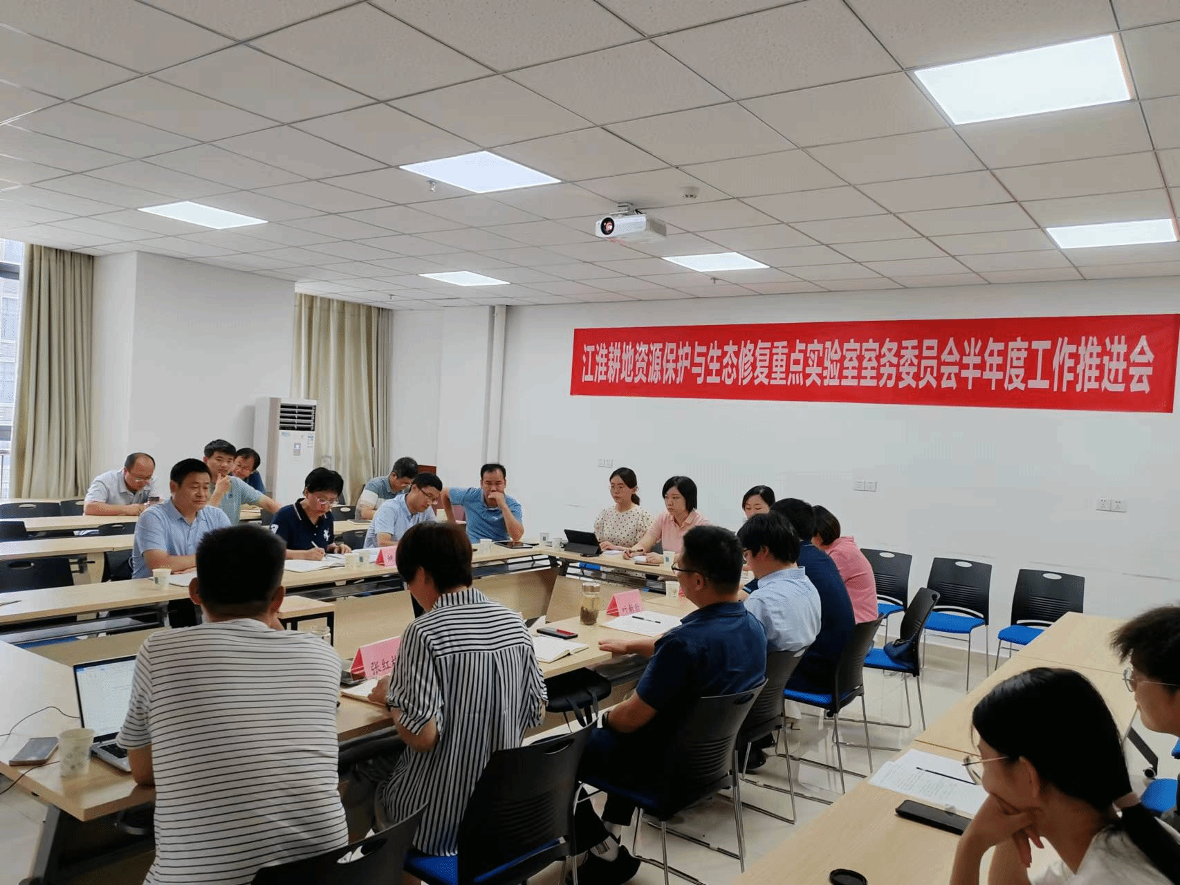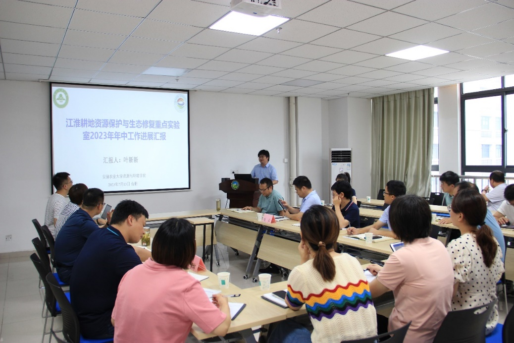 本网讯 7月13日上午,自然资源部江淮耕地资源保护与生态修复重点实验室2023年度工作推进会在安徽农业大学资源与环境学院召开。安徽省自然资源厅科技外事处处长姚敏,四级调研员赵云、安徽省国土空间规划研究院院长刘洋兵、安徽省测绘总院信息中心副主任陈春晖,以及实验室骨干成员参加了会议,实验室主任叶新新教授主持会议。