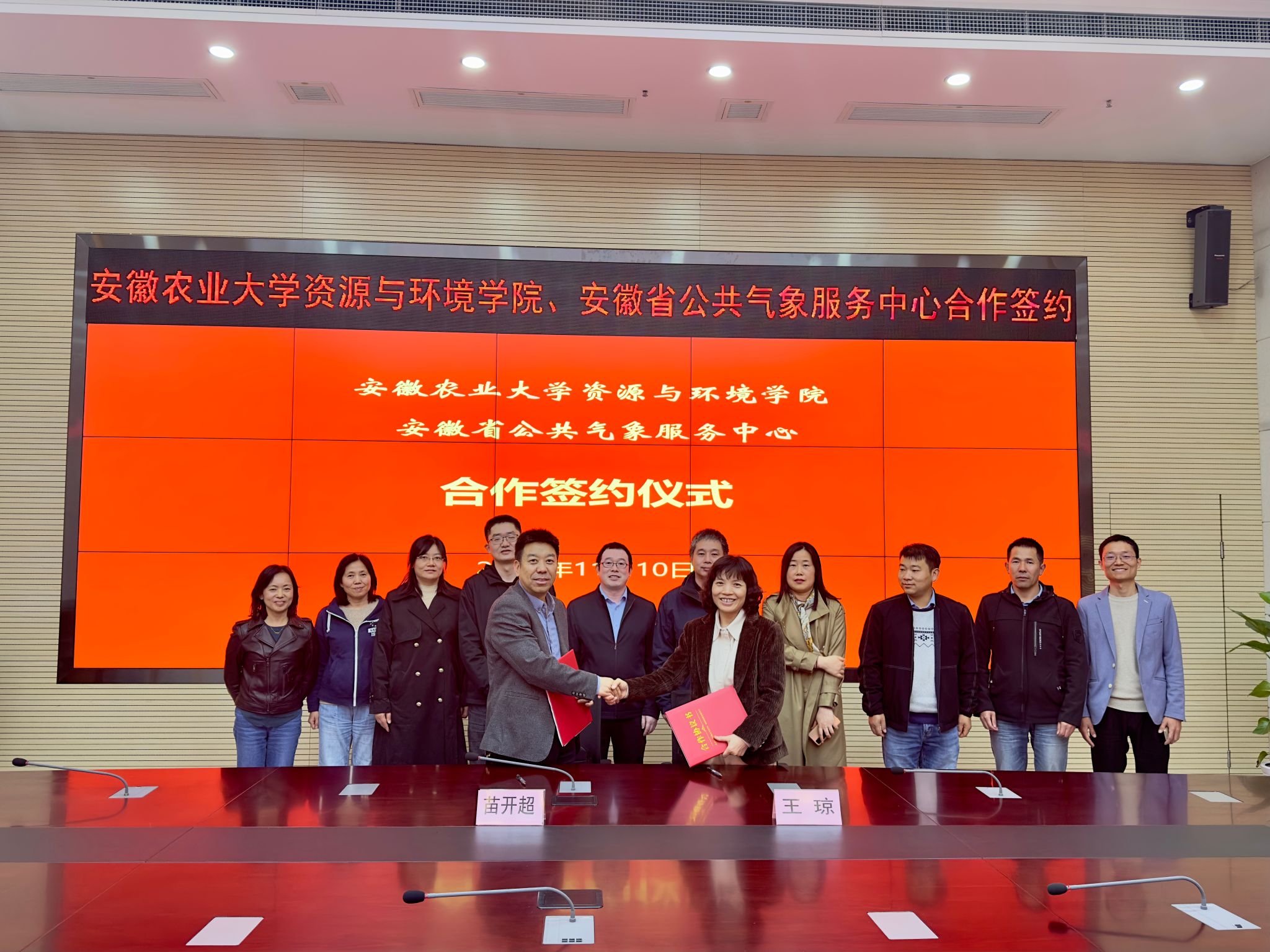 本网讯 11月10日下午,资源与环境学院党委书记王琼率队赴安徽省公共气象服务中心考察交流并签署合作协议,大气科学系负责人、骨干教师及两办人员随行并参加签约仪式。