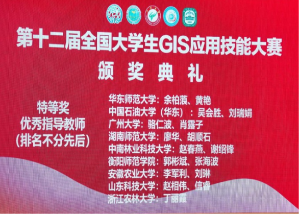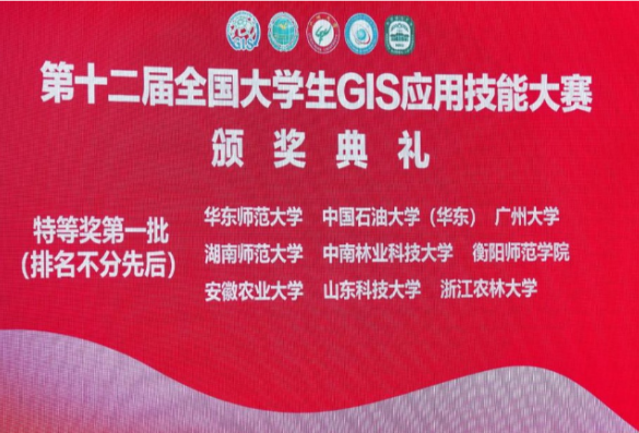 本网讯 2023年12月1-3日,中国地理学会、中国地理信息产业协会主办的“第十二届全国大学生GIS应用技能大赛“在广州大学举行。本次大赛采用网络竞赛方式,共吸引全国193所高校参加,每校推荐一支队伍参赛,参赛规模与质量均创历史新高。由资源与环境学院本科生吕芯茹、彭兴涛、张涵、冯俊武组成的安徽农业大学参赛团队,在比赛中团结协作、合理分工、冷静分析,经过激烈角逐,最终斩获特等奖(最高奖),李军利、刘琳获优秀指导教师荣誉称号。