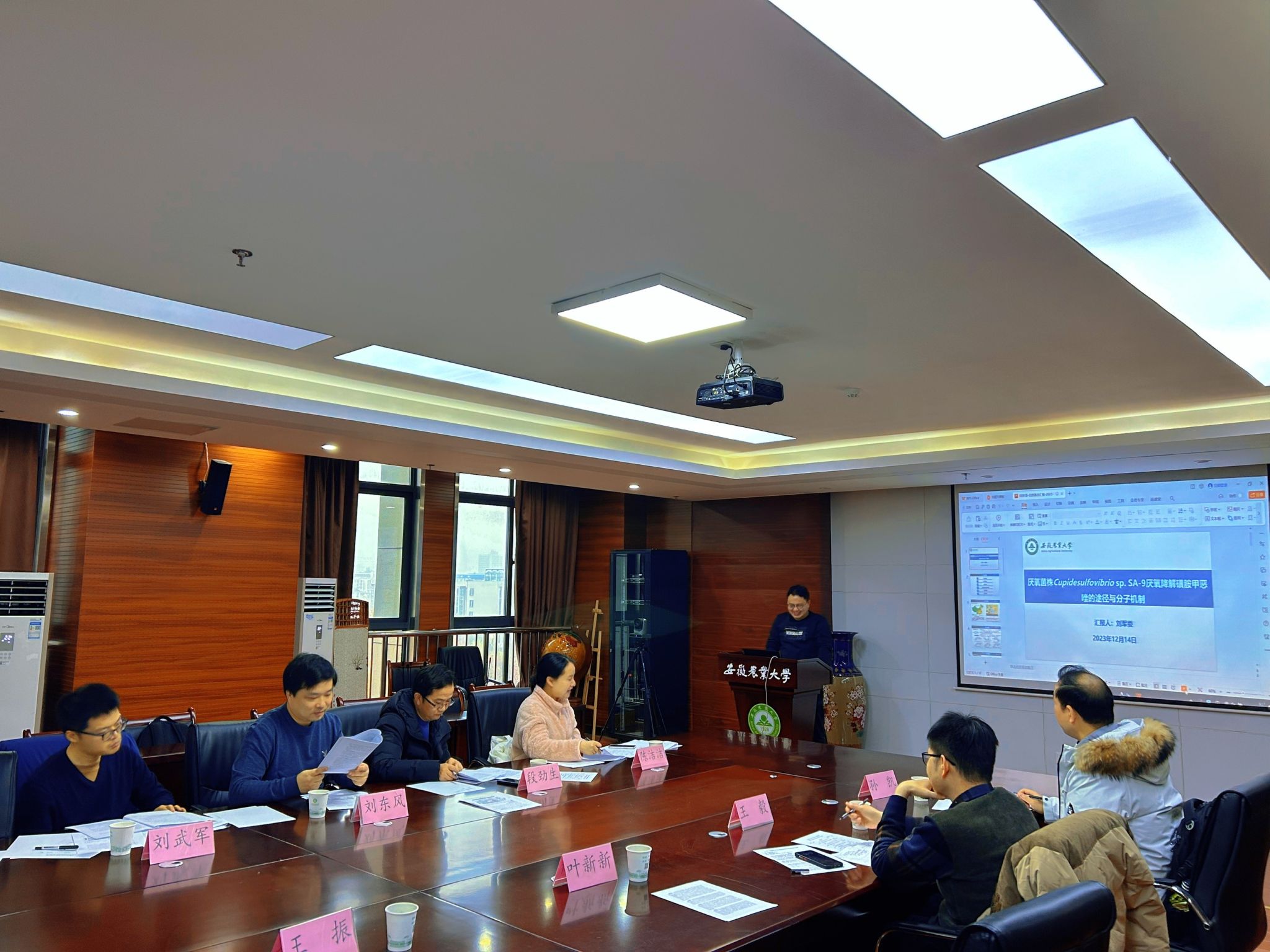 本网讯 12月14日,资环学院在中西部大楼510召开“2024年国家自然基金申报论证会”,会议邀请了中国科学技术大学陈洁洁教授、刘武军教授、刘东风教授、安徽省农业科学院段劲生研究员等校外专家参与指导,本次论证会由资源与环境学院副院长叶新新教授主持。