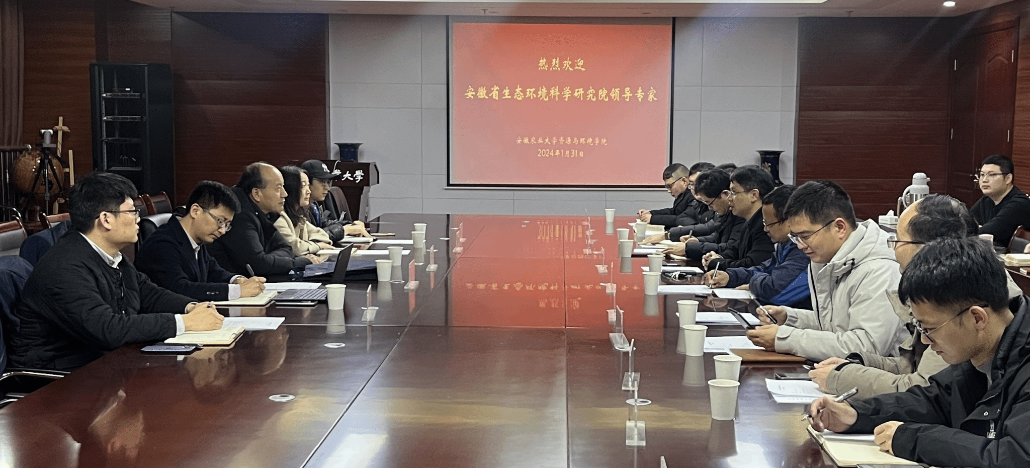 本网讯 1月31日下午,资源与环境学院在中西部综合楼510会议室召开了新污染物研究工作交流座谈会。校党委常委、副校长吴祥为教授出席座谈会,安徽省生态环境科学研究院鄢达昆院长、陈红枫副院长等一行应邀出席,学院领导、环境科学与工程专业负责人和教师代表参加了座谈会,会议由学院院长张震教授主持。