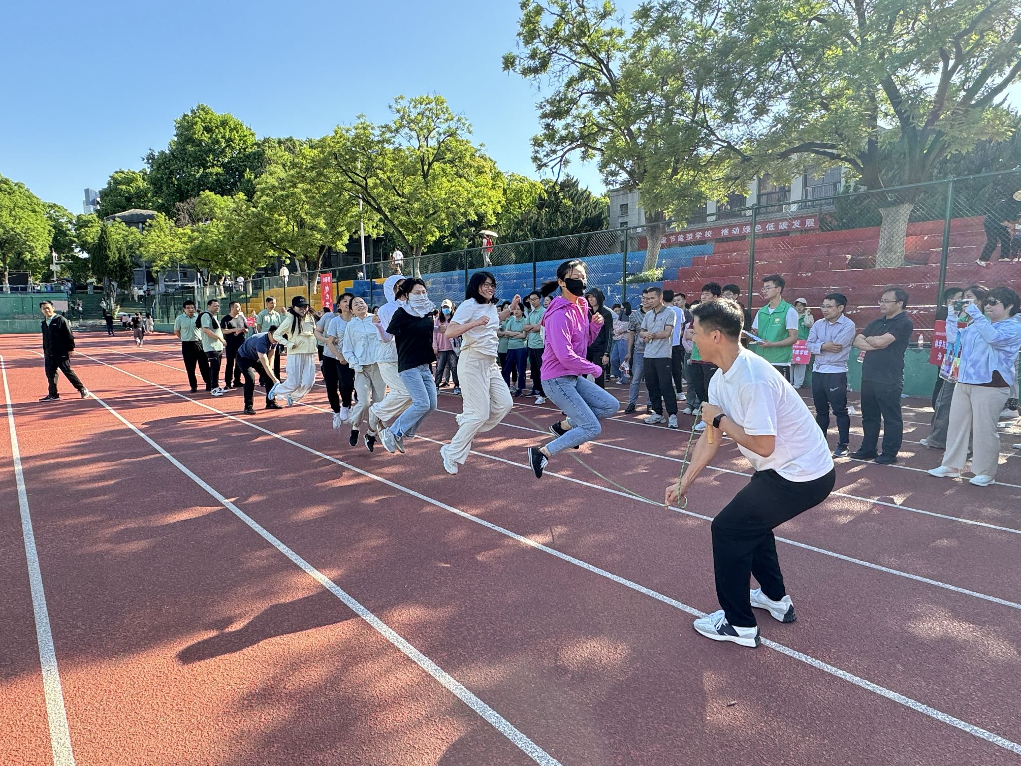 本次趣味运动会设置协力云梯、节节高升、运动火炬、龙腾万里和跳大绳5个团体项目和沙包掷准1个个人项目。不仅丰富了我院教职工的课余生活,也促进了教职工之间的交流和团结。通过参与比赛,教职工不仅锻炼了身体,也提升了团队合作精神和集体荣誉感。