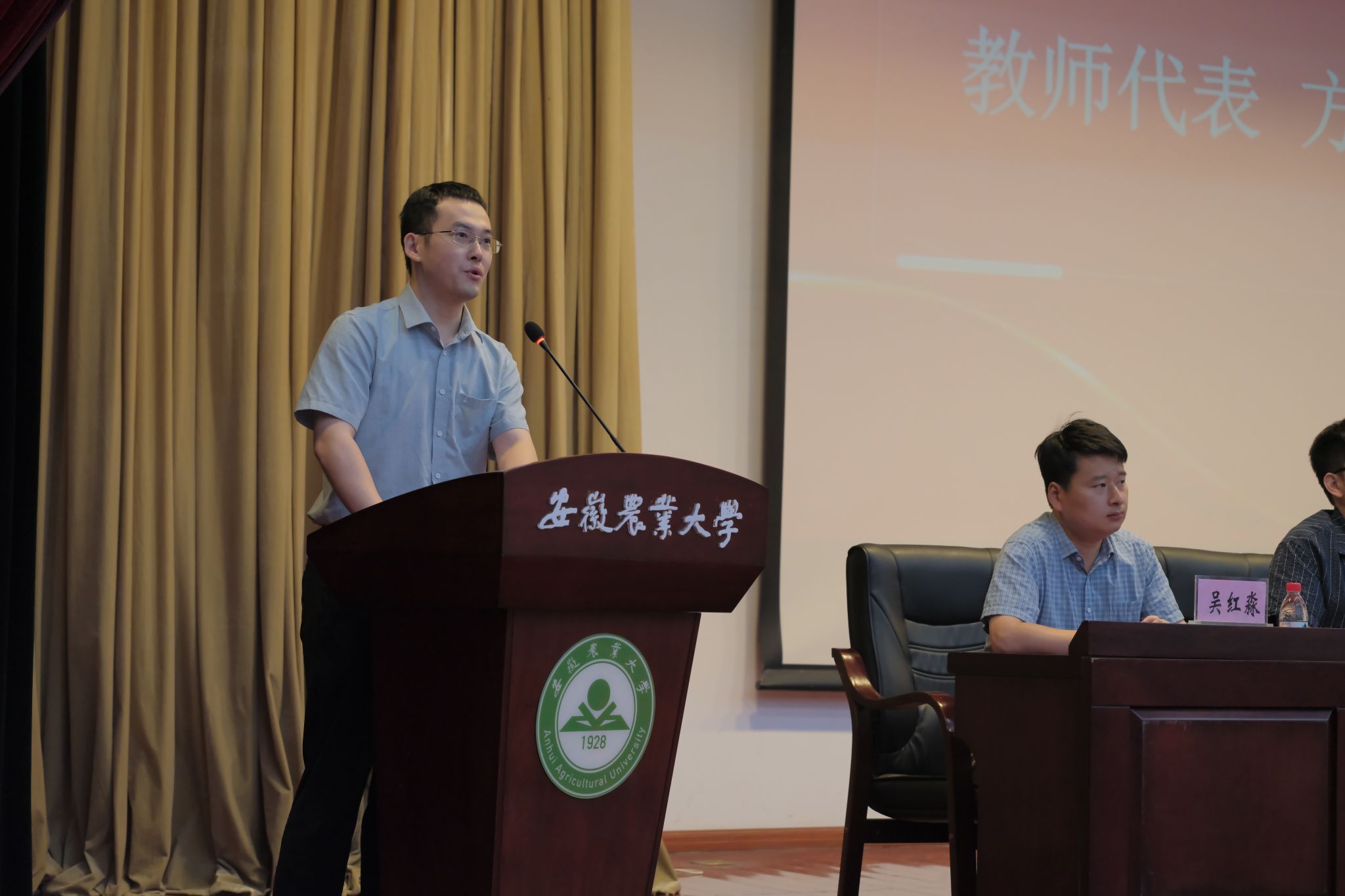 教师代表方连城结合自己在安农求学和工作14年的经历,鼓励毕业生要为自己的梦想找到不懈坚持的理由,勇敢踏上前行的道路,主动拥抱不确定性,积极在变化中寻找机会,在人生的不同阶段及时做好身份的转变,怀着学习的心态不断适应新环境、新变化。