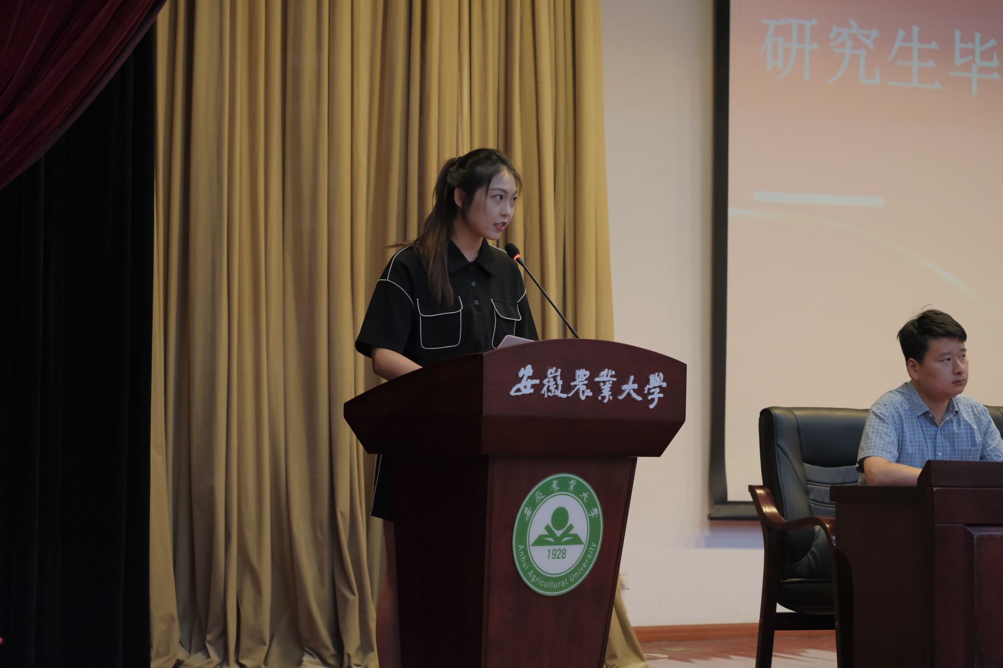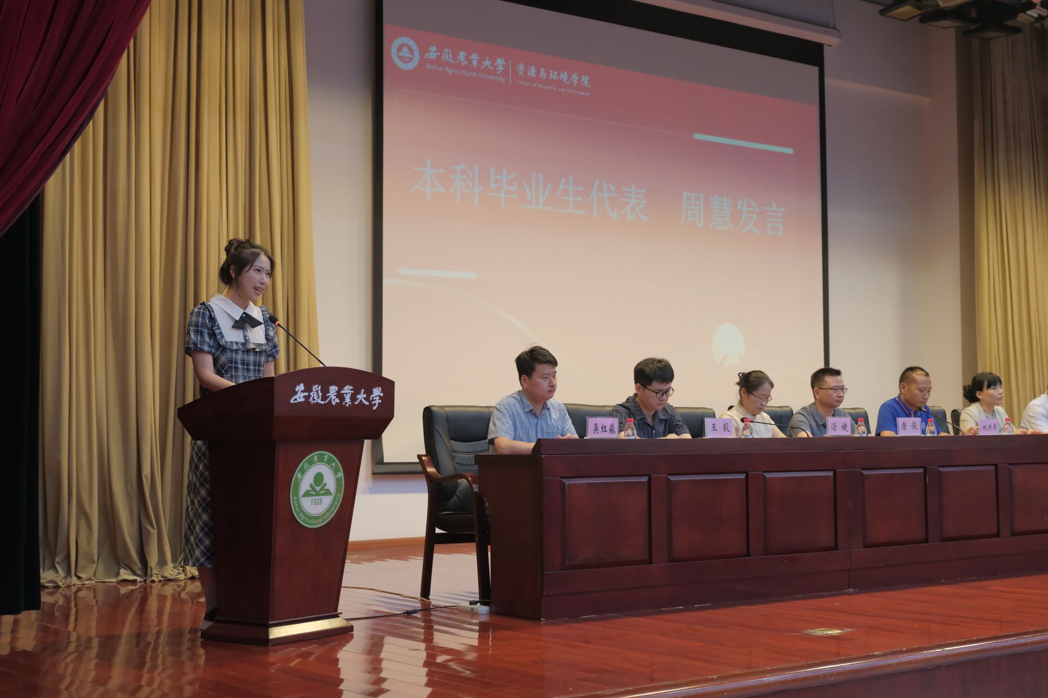 2020级农业资源与环境专业周慧和2021级植物营养学专业綦洋两位同学分别代表本科毕业生和研究生毕业生发言。她们讲述了各自在安农求学期间的收获,对学校和学院提供的资源与平台,老师们给予的关怀、同学的鼓励都表示了衷心的感谢,与各位毕业生互勉要各自努力,顶峰相见。