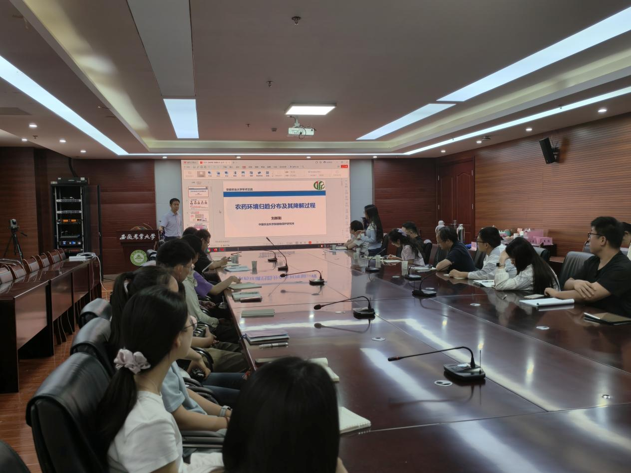 会上,刘新刚研究员作了题为《农药环境归趋分布及其降解过程》的报告。报告围绕农药施用后在环境水体和土壤中的迁移分布、农药残留分配预测模型、农药及其降解产物转化过程解析等内容展开,系统阐述了农药在水/沉积物/鱼体间的分布规律,探讨了农药及其光解、水解产物的潜在生态风险,以及如何通过理解归趋与降解过程来指导农药的科学使用和污染防控,为发展环境友好型农药和绿色农业提供了有效的科学依据。