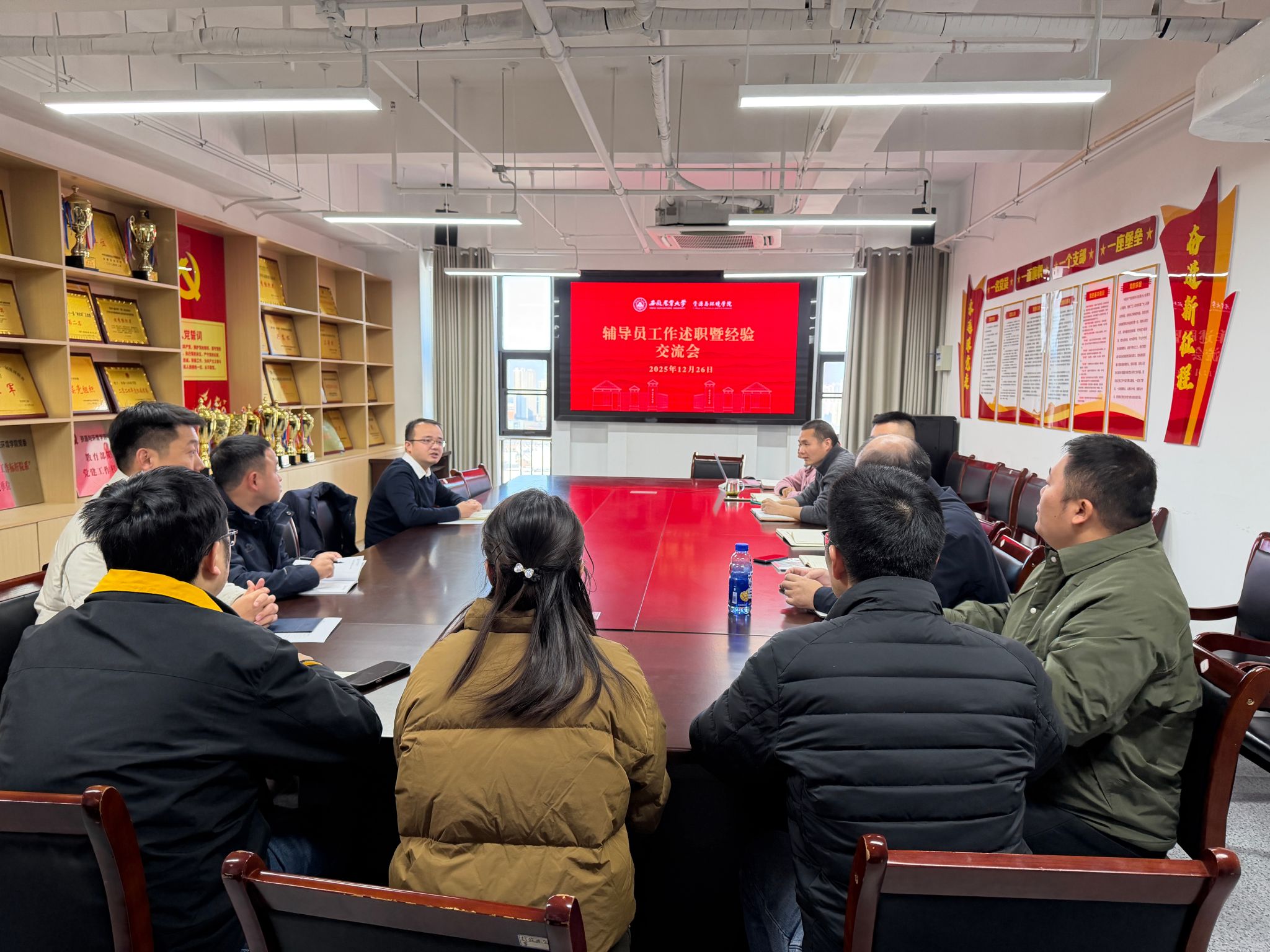 本网讯12月26日,学院举办2025年辅导员工作述职暨经验交流会,全体专兼职辅导员参会,会议由学院党委副书记、纪委书记毛晓文主持。