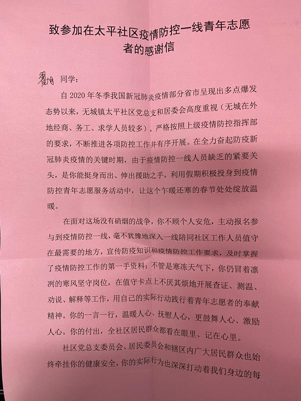 本网讯 近日,我院学子因在防疫工作中突出表现,受到当地团委、社区表彰及媒体报道。