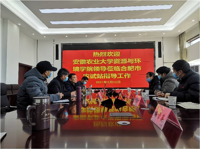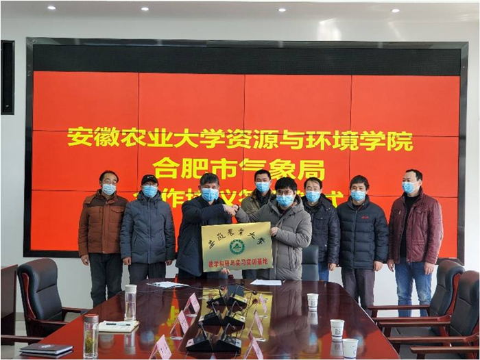 本网讯 1月12日上午,资源与环境学院副院长叶新新及学院办公室、气象学教研室负责人一行6人,赴合肥市气象局农业气象试验站签署局校合作协议,并为双方共建“教学科研与实习实训”基地授牌。