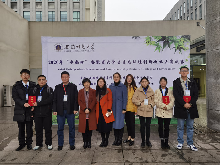 本网讯 11月28日,安徽省2020年“水韵杯”大学生生态环境创新创业大赛决赛在安徽师范大学举行。安徽省生态环境厅总工程师孙艳辉、安徽师范大学教务处处长周端明、安徽农业大学教务处处长曹成茂教授、资源与环境学院党委书记王琼等出席决赛颁奖典礼。