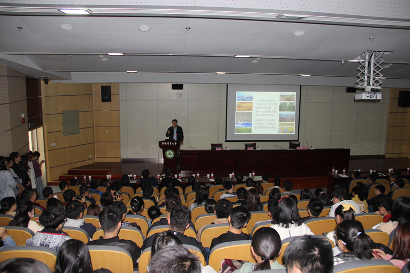 本网讯 11月9日下午,中国科学院生态环境研究中心研究员傅伯杰院士等应邀来校开展学术交流,并在图书馆第二报告厅作题为《生态系统服务研究前沿》的学术报告,校党委常委、副校长操海群主持报告会,学校相关学科200余名师生参加了报告会。