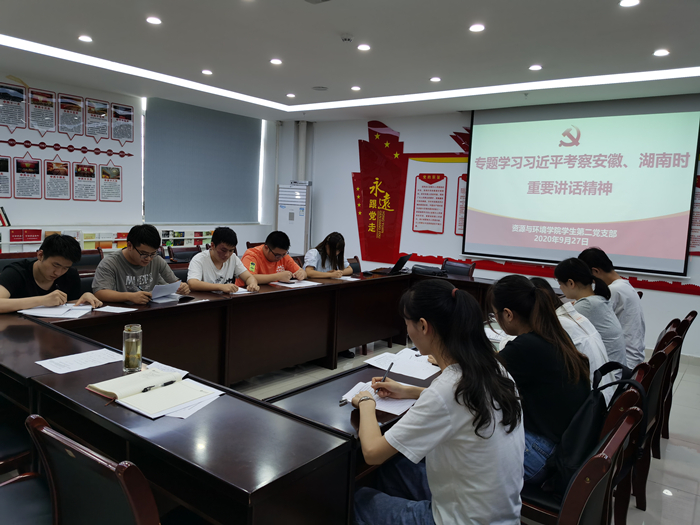 本网讯 9月27日下午,资源与环境学院学生第二党支部在中西部工程楼南楼503党员活动室集中学习习近平总书记考察安徽、湖南时重要讲话精神。