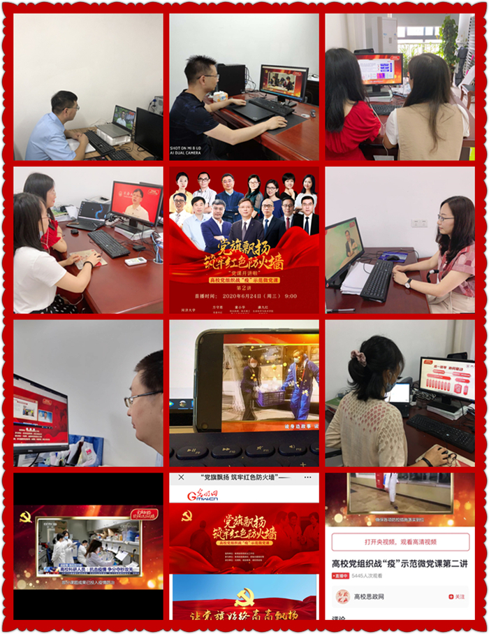 观看学习之后,各教工和学生党支部组织党员进行了线上交流讨论。大家认为,党课中的4所高校在抗“疫”工作中抓党建、强党建,真正发挥出了党组织的战斗堡垒作用。共产党员在疫情防控工作中冲锋在前,表现出了强烈的使命担当精神和责任意识;纷纷表示,今后将以更坚定的初心、更饱满的热情、更扎实的作风,立足本职岗位,积极发挥作用,以实际行动为党旗增辉添彩。(朱晓晨 通讯员:程玉峰)