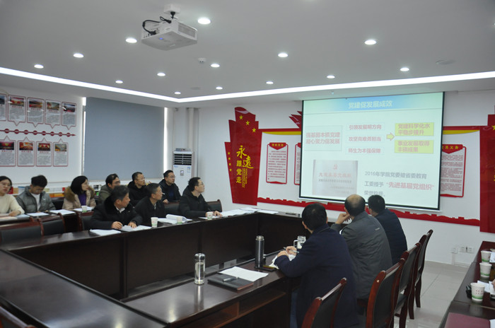 校第四验收工作组听取了学院党委和择优推荐的3个党支部从工作思路、建设目标、具体举措和特色做法等方面汇报的双创工作进展情况。
