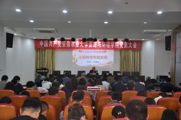 本网讯 10月30日下午,资源与环境学院举行“不忘初心、牢记使命”主题教育专题党课报告会,学院党委书记李春保结合学习调研,为学院全体师生党员作专题党课报告。校主题教育第四督导组副组长、机关第二党总支书记、档案馆馆长管志权出席并进行指导。