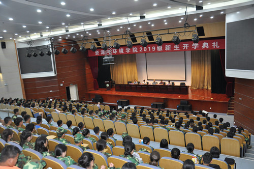本网讯 9月9日晚上,资源与环境学院2019级新生开学典礼于图书馆第一报告厅隆重举行。学院党政领导、新生辅导员以及全体2019级本科生、研究生参加了会议,会议由学院党委副书记张晓伟主持。