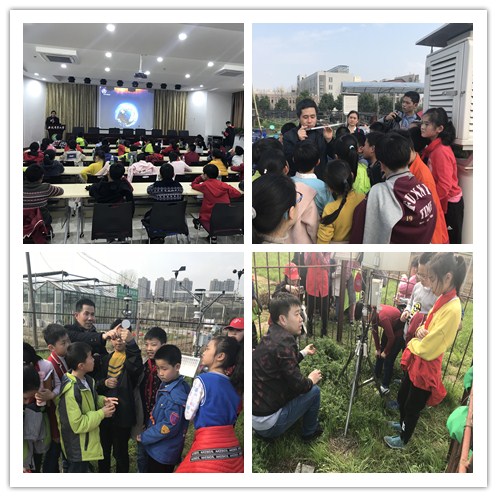 20日下午,气象教研室的杨书运、程志庆、王凤文等老师在气象试验站,为来自乐农小学的小学生普及了气象常识,讲解了自动气象观测站、百叶箱、轻便三杯风速风向表、地标温度仪等仪器的作用和工作原理。杨书运老师结合本次气象日“太阳、地球和天气”的主题在学院报告厅为小学生们上了一堂生动有趣的气象知识科普课。22至29日,资环学院在北二门及大礼堂前广场等地设置气象科普宣传展板,并面向全校学生开展气象知识竞赛、天气播报竞赛等活动,评选出2019年校园“气象大使”。