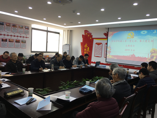 本网讯 3月6日下午,资源与环境学院教工第一、第三党支部组织全体党员教师在党员活动室开展主题党日活动,开展集中学习、研讨。会议由第三党支部书记张震主持。