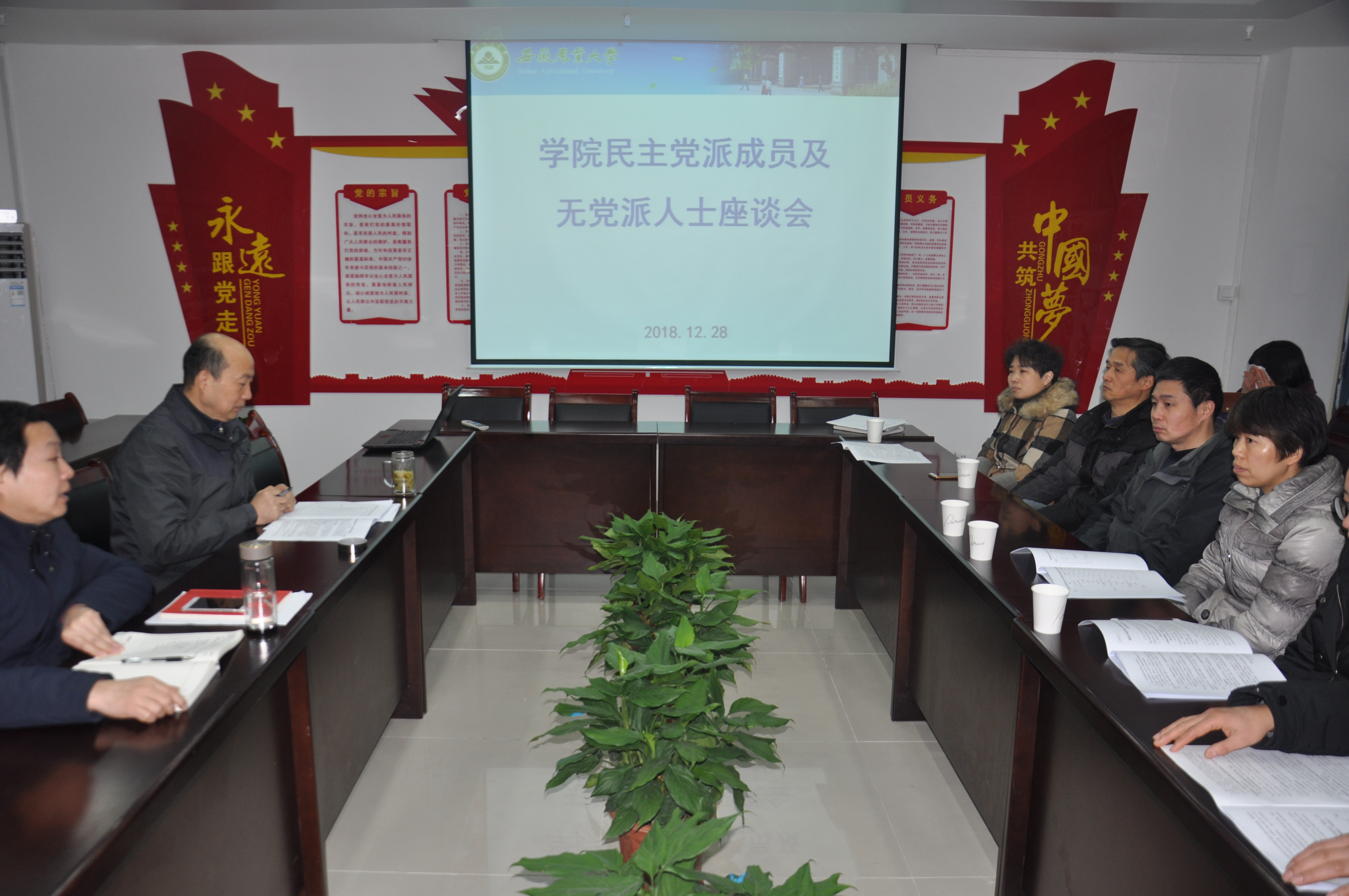 本网讯 12月28日,资源与环境学院召开学院民主党派成员、无党派人士座谈会。学院党政领导出席会议,部分党外人士参加座谈会,会议由院党委书记李春保主持。
