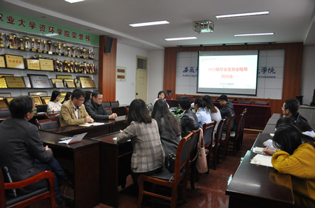 11月13日下午,资环学院在十教418室举办2019届毕业生就业指导培训会。培训由学院负责就业工作杨利梅讲解,2019届毕业班班主任、班级就业联络员以及部分毕业生参加此次培训会。