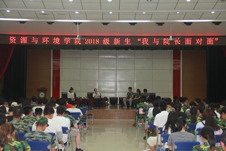本网讯 为巩固专业思想、激发学习热情,9月11日晚,资源与环境学院在欣苑学生活动中心多功能厅举办了“我与院长面对面”活动。院长郜红建教授与全体2018级新生300多人济济一堂,现场答疑解惑、热议焦点话题、畅谈人生理想。学院党委副书记张晓伟、2018级新生辅导员参加了活动。