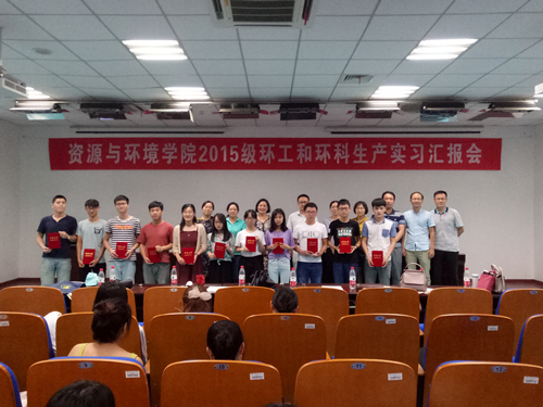 本网讯 7月6日上午,资源与环境学院在生物科技楼441举办2015级环境工程和环境科学专业生产实习总结汇报暨表彰活动。学院党委副书记兼副院长张晓伟、环境工程和环境科学教研室老师以及2015级环境工程和环境科学专业学生、2016级环境工程和环境科学专业学生代表参加总结汇报活动。
