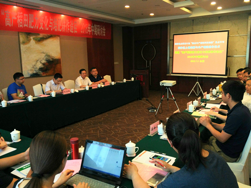郜红建代表承办单位和子课题承担单位致辞,简要介绍我校和资源与环境学院办学和科研研究情况,并作了题为《作物秸秆降解对土壤有机质化学结构的影响》的报告。在研讨环节,课题主持人张会民研究员简要介绍了课题的总体研究目标和主要研究内容,随后西南大学资源环境学院蒋先军教授、湖南省土壤肥料研究所孙耿博士、江西省农业科学院陈金博士、安徽农业大学资源与环境学院柴如山博士和中国农业科学院祁阳红壤实验站黄晶博士分别汇报了5个子课题的研究进展和下阶段研究计划,并同与会的骨干成员们进行了深入交流和讨论。在培训环节,黄晶博士、韩天富和柳开楼分别作了《基于ArcGIS区域稻田肥力空间变化特征》、《高产稻田肥力关键因子分析-随机森林法》和《红壤稻田肥力质量变化:从典型点位到县域尺度》的相关报告,为高产稻田的肥力演变规律分析提供了有力手段。