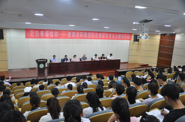 本网讯 为深入推进学生党建特色品牌工作,以身边的优秀典型教育、影响和激励更多的学生成长成才,6月20日下午,资源与环境学院在图书馆第二报告厅连续第七年举办以“对话青春信仰”为主题的优秀学生党员主题报告会。2018届5位优秀毕业生党员代表童金钊、李婷婷、张鸣帅、赵一、吴银龙等结合自己在大学期间学习、入党和工作实践经历等分享了他们的青春成长故事。学院党委书记李春保出席报告会,学生党员、入党积极分子以及部分低年级学生代表参加了报告会,会议由学生第二党支部书记程玉峰主持。