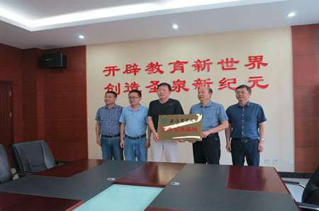 本网讯 6月12日下午,资源与环境学院党委书记李春保、招生就业处副处长王涛、资环学院党委副书记张晓伟等一行5人前往肥东圣泉中学举行优质生源基地挂牌仪式暨招生宣传工作,并与中学签署《安徽农业大学优质生源基地协议书》。圣泉中学校长王胜权以及分管校领导和毕业班班主任代表等参加签约授牌仪式。
