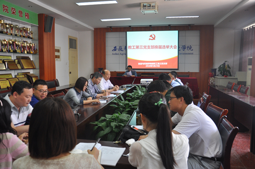 本网讯 根据基层党组织标准化建设和 《关于做好党支部换届选举工作的通知》(校党字〔2018〕21号)的精神和要求,5月23日下午,学院教职工第三党支部顺利完成了换届选举工作。支部换届大会由院党委纪检委员蒋跃林同志主持。