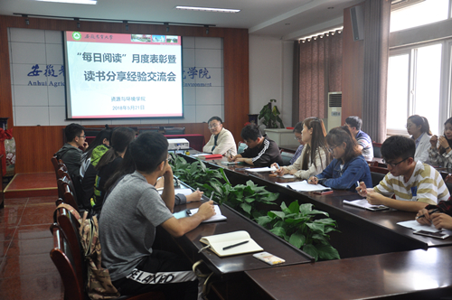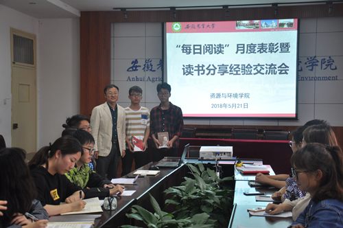 本网讯 为扎实推进学院“每日阅读”活动,5月21日中午,资源与环境学院在十教418召开“每日阅读”月度表彰暨读书经验分享交流会,学院全体团支部书记及学生分会主要学生干部等参加会议。