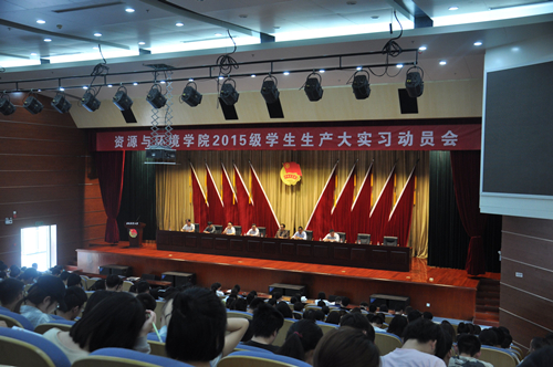 本网讯 5月4日下午,资源与环境学院在图书馆第一报告厅召开2015级教学生产大实习动员会。教务处副处长李玮、学院院长郜红建以及各专业实习负责人出席会议,相关教研室主任、辅导员老师以及此次实习的全体同学参加了动员会,会议由学院党委副书记张晓伟主持。