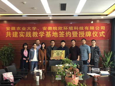 本网讯:为推进校企合作,协同培养创新创业型人才,3月27日下午,资环学院党委副书记张晓伟一行3人前往位于合肥市经开区东湖高新合肥创新中收的安徽皖欣环境科技有限公司调研,签订校企共建实践教学基地协议并举行授牌仪式。