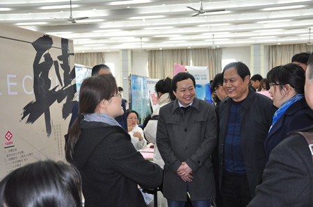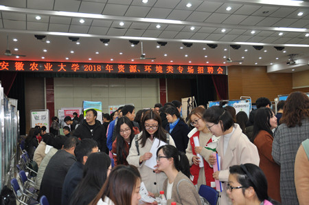 本网讯 3月17日上午,资源与环境学院举办的安徽农业大学“2018年资源、环境类专场招聘会”在欣苑四楼多功能厅顺利举行。校招生就业处副处长沈兆梅及学院党政领导亲临现场指导工作。