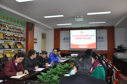 本网讯 根据《资源与环境学院党务骨干、业务骨干暨党支部书记专题培训方案》部署和安排,12月27日下午,资源与环境学院学习宣传贯彻党的十九大精神党务骨干暨支部书记培训班正式开班,学院党委副书记张晓伟作专题辅导报告。学院党委委员、各党支书记和支部委员参加培训。