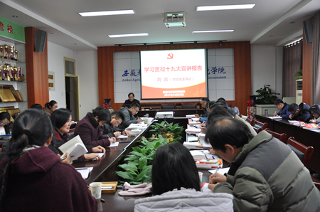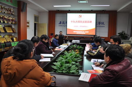 本网讯 根据《资源与环境学院学习宣传贯彻十九大精神实施方案》的工作推进安排,12月20日下午,学院党委书记刘凯和副院长谈应权分别为全体教职工和教工第一党支部宣讲十九大精神。