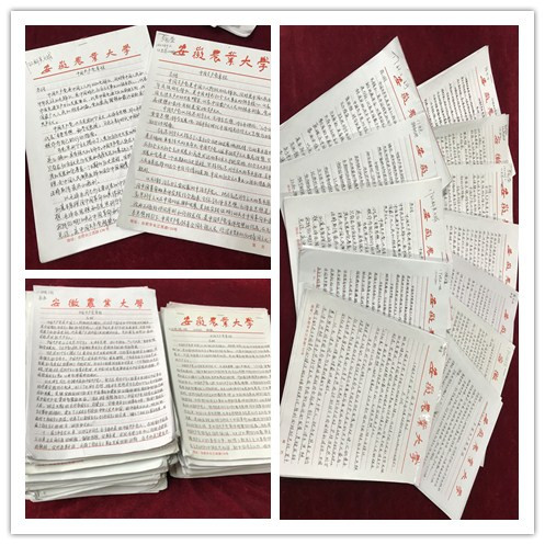 十九大胜利闭幕后,根据学院党委统一安排和部署,全体积极分子按照“逐字逐句逐条通读党章,基础在学、关键在悟、重在践行”的要求,一笔一划、一字一句、工工整整地全文抄写了新党章。大家在抄写过程中结合党课理论学习并联系自己的入党动机、对十九大报告的学习感悟和生活实际等,通过课后讨论、线上交流和撰写心得体会等形式交流了对党章的理解,在学习、思考、实践、感悟的过程中,进一步加深了对党的理解和认同感,坚定了理想信念,端正了入党动机,明确了努力方向,真正促进了入党积极分子在抄写中学到精髓、学出效果。