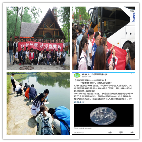 为深入开展“喜迎十九大 激扬青春梦”主题教育活动,增强青年大学生的社会责任感,以青春实际行动迎接党的十九大胜利召开,在“6.5”世界环境日到来之际,资源与环境学院积极谋划、创新形式,以“青春环保行·绿色长征路”为主题开展了丰富多彩的教育活动。