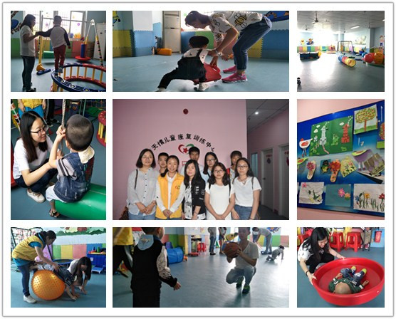 一大早,在学院心理联络员老师的带领下,志愿者们满怀热情地前往康复中心。在中心,大家首先接受了有关看护特殊儿童的简单技能培训,了解与他们相处的基本知识和注意事项;随后在专业培训老师的指导下,陪伴这些特殊的小朋友们一起进行感觉统合训练课的学习。志愿者们认真、耐心、细致的看护和指导小朋友们训练,陪他们玩游戏,并时刻观察他们是否需要喝水,上厕所,跟着他们的步伐,保护他们的安全,让孩子们快乐的享受这个世界的温暖阳光,感受到世界对他们的关爱。他们的举动获得了中心老师和儿童家长们的肯定和赞许。
