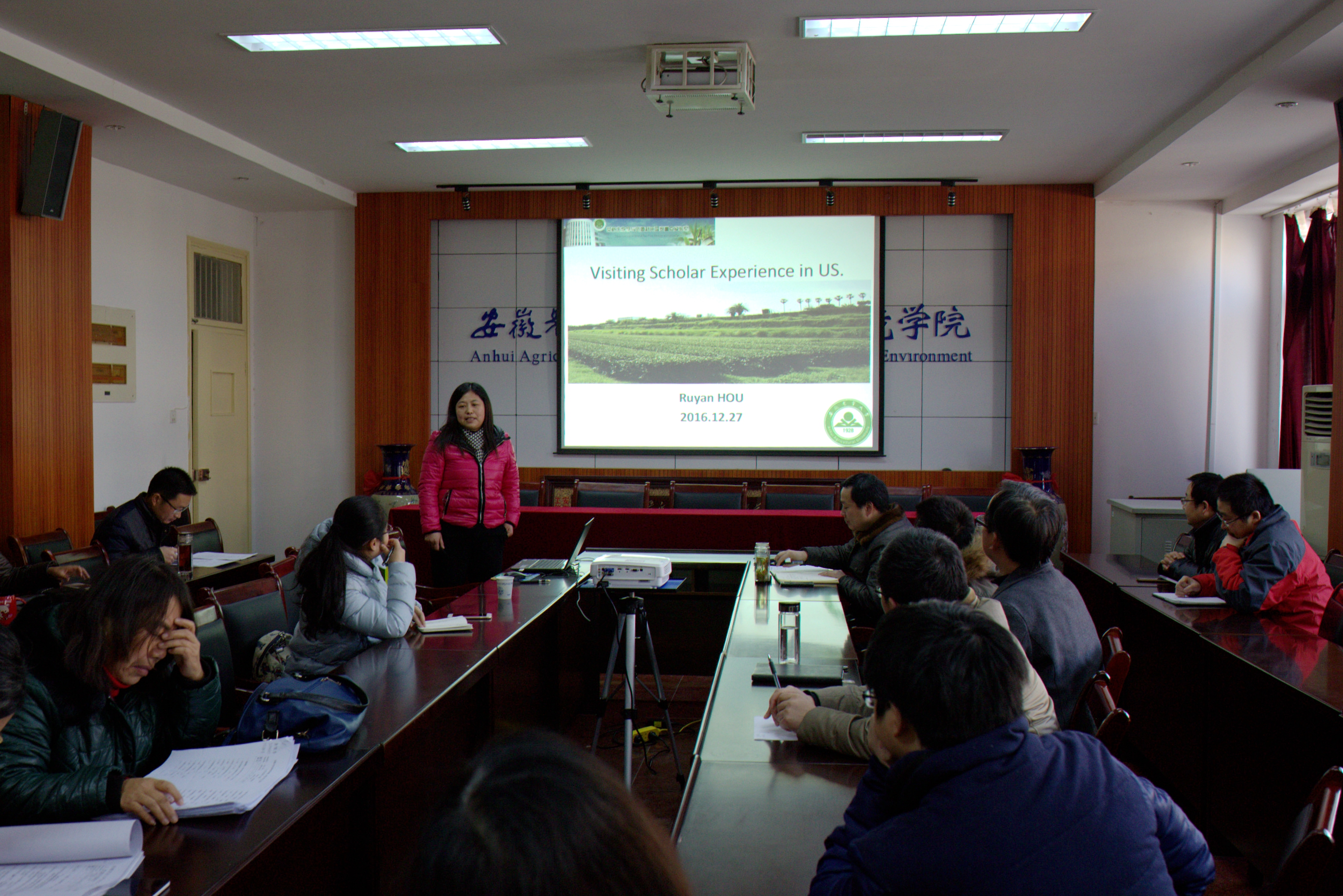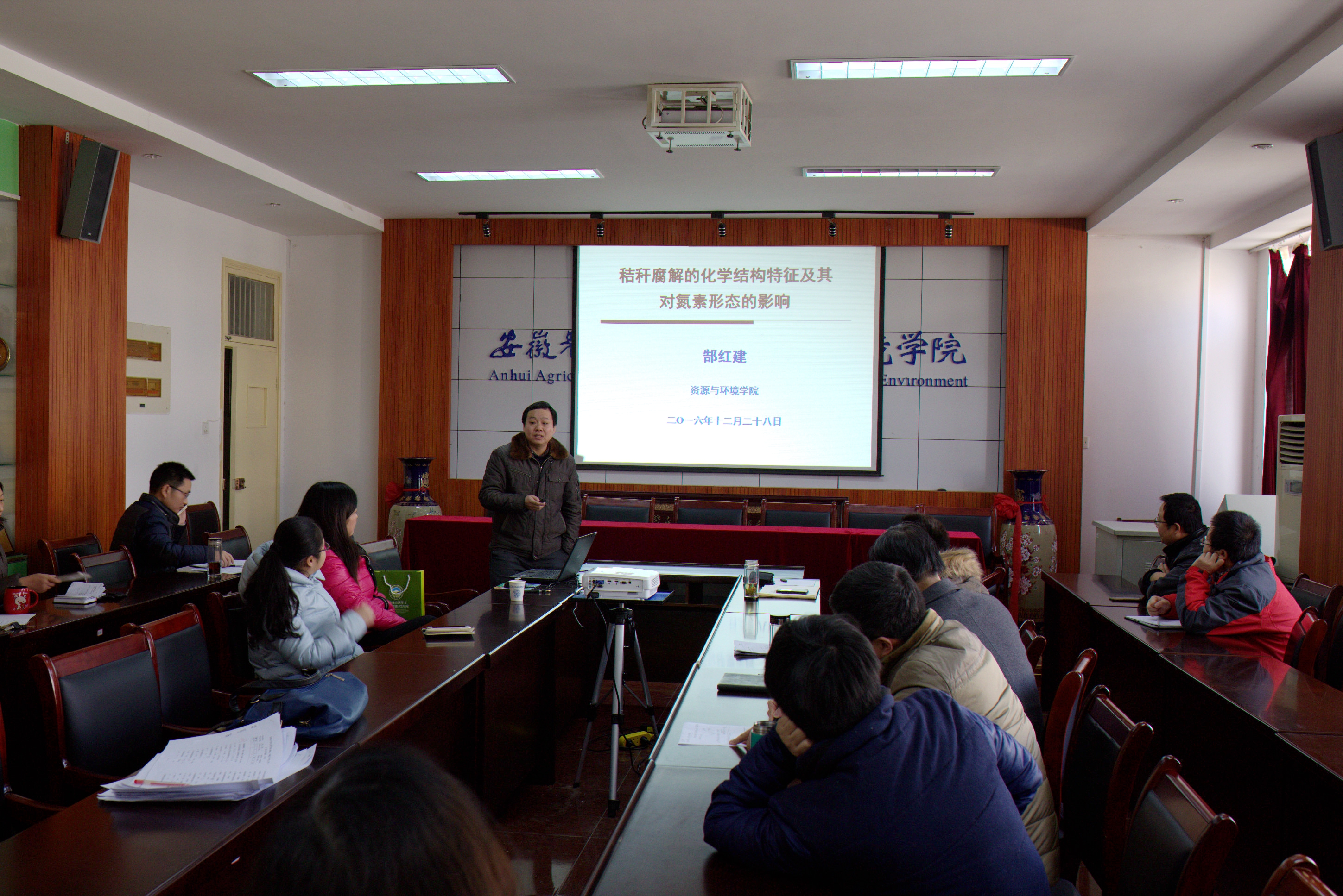 本网讯:为扎实落实中青年教师教科研能力提升计划,12月28-29日,资源与环境学院举办了副高及以下职称教师科研进展情况汇报交流活动,院长郜红建全程参加点评并做学术报告,同时,特邀茶与食品科技学院侯如燕教授做专题报告,汇报交流活动由副院长谈应权主持。