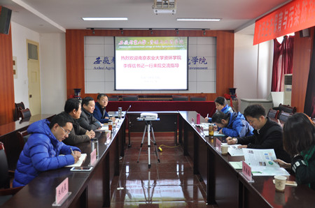 李辉信对资环学院党政领导的热情接待表示感谢,他指出,南京农业大学和安徽农业大学区位相邻、学科相近,双方在人才培养、项目合作、学术交流等有着良好的合作基础,安农资环学院在党建、校院两级管理改革、人才队伍建设等方面工作扎实、富有成效,希望双方通过进一步加强交流、相互学习借鉴,共同推动发展。