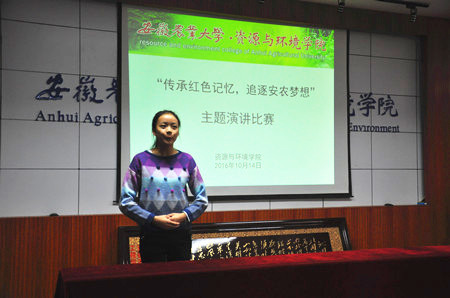 10月14日中午,学院在十教418举行“传承红色记忆,追逐安农梦想”演讲比赛,在两小时的比赛中,17位选手用丰富的情感,独有的声音诠释了他们对主题的理解。演讲比赛为同学们提供了一个展现自我,锻炼自我的平台,更让安农梦想扎根每个人的心底,让红色记忆得到传承。与此同时,学院围绕主题,结合推荐的经典红色读物,指导学生制定读书计划,开展读书征文活动,并以此为契机,整理优秀读书心得和典型经验做法,推动学生读书学习活动的常态化。