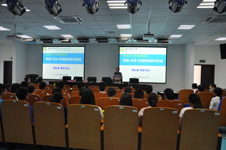 院长郜红建教授对新同学的加盟表示欢迎,并寄语新生要怀揣梦想,抓住机遇,努力学习,提高综合素质和科技创新能力。郜红建同志围绕当前国家在资源环境领域的突出问题、重大战略、重要政策和面临的机遇与挑战,从宏观层面上做了题为“资源、生态、环境的机遇与挑战”学术报告,进一步开拓了研究生新生视野,巩固了对资源环境领域相关学科的意识,拓展了对该领域前沿科技的认识。
