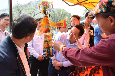 开幕式现场,除环保知识有奖问答、环保手工艺品作品展等传统节目,最大的亮点便是引入了非物质文化遗产活态展演,以更加丰富的形式,把生态环保理念植入师生心中。马派皮影传承人马飞现场表演了以“拯救江豚、保护长江”为题的皮影戏,精湛的技艺,引人入胜且发人深思的故事情节,博得围观同学们的阵阵喝彩;李氏土陶传承人李宏亮带来的陶艺展示让同学们领略了泥土艺术之美。在传承人的指导下,不时有同学积极参与互动,耍一把皮影、做一个陶器拉胚,在充分感受传统文化魅力的同时,更加深刻地感受到环境生态保护责任之重。