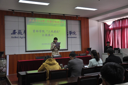 各班级通过PPT演示汇报了在班风创建过程中的预期目标、优秀或特色做法、取得成效、不足之处和改进措施等,并推选各自在班风建设中表现优秀的学生干部典型。同时,结合线上班风展示的内容,各班级对凝炼的班风、班训等内容做了进一步解读。其中,13环境工程的学习小组、一对一帮扶模式,14环境科学的四六级模拟考试、优秀笔记评比大赛,15环境科学的集体自习、特色“文化墙”等优秀做法得到与会评委的一致肯定。