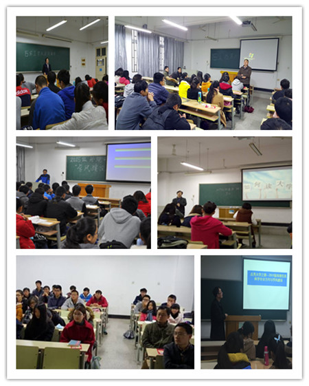 章力干老师向2015级农资环专业同学介绍了专业人才培养方案,并从就业和考研两方面与同学们展开讨论。他鼓励大家在大学期间构建走向成功的四拼图——母校文凭、实用技能、独立人格、同学友情,引导大家学会独立、学会交往、学会感恩,树立学习目标、培养学习兴趣、养成学习习惯。曹德菊老师以环保工程师、环评工程师培养为切入点,向2015级环工专业同学阐述了专业的综合性和实用性,并以2011级环境工程专业“学霸”寝室为例,鼓励同学们合理规划大学生活,在更高的舞台上展现自己,实现人生价值。李军利老师以大学学习、专业发展趋势、就业方向、班风建设为主要内容,引导同学们树立正确的生活、学习与就业观念,鼓励同学们扎实学好基础课程,多关注行业相关主题网站,了解高水平GIS院校学科前沿,主动开展探索式学习,积极参与学科竞赛。巫厚长老师和张震老师结合近期参与学术会议情况,从食品安全、生态农业、高标准农田建设、城市垃圾的处理以及生态旅游等方面,向2015级生态学专业同学们介绍了生态学研究的前沿动态和热点内容,使同学们对本专业的研究方向有了明确的认识。李学德老师和吴祥为老师从环境科学专业的发展历史、师资队伍、实验教学条件、课程体系等方面向2015级环境科学专业同学详细阐述了专业的主干学科、主要课程和实践教学环节,并就同学们感兴趣的专业发展前景和就业方向做了交流。