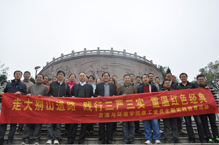 根据资环学院党委的统一部署,11月7日,资环学院教工第一、第二党支部组织全体教工党员赴金寨开展了为期一天的“走大别山道路、践行三严三实、重温红色经典”主题教育实践活动。学院党政领导全程参与了活动。