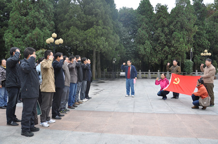 下午,全体党员来到金寨县革命博物馆、洪学智将军纪念馆和红军纪念堂,实地感受革命先烈的奋斗历程,接受革命传统教育。在讲解员的介绍下,一段段沉重跌宕的历史,一件件可歌可泣的英雄事迹,一位位战功卓越的共和国将军简介,一个个可歌可泣、排列整齐的烈士英名,给了大家深深地震撼。随后,全体党员来到革命烈士陵园,在烈士纪念碑前,集体默哀并三鞠躬。全体党员在鲜艳的党旗面前,重温了入党誓词。