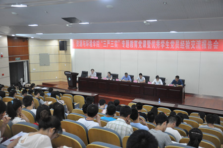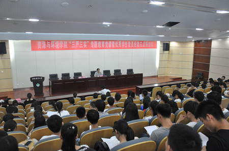 6月24日晚,资源与环境学院在图书馆第二报告厅举行“三严三实”专题教育党课和优秀学生党员经验报告交流会,学院党委书记刘凯以《践行“三严三实”,争做 “四有” 农大学子》为题,为全体学生党员和入党积极分子上了一堂生动的专题教育党课。史贺贺等5名优秀学生党员结合自己成长经历,与同学们交流和分享了个人的经验和体会。